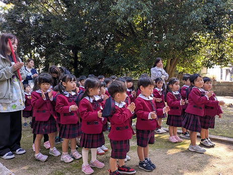 年少・満3歳児さんはお散歩ロープで歩きます。
